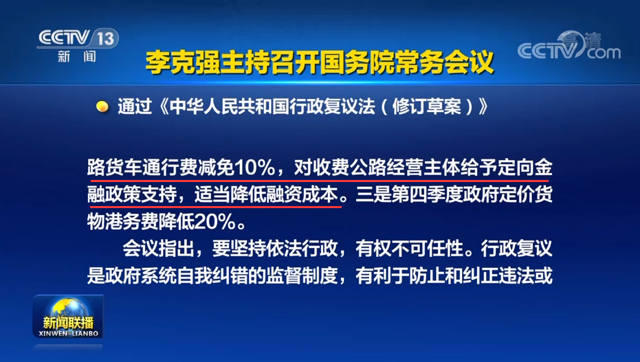 2022/09/26四季度起貨車過路費減免10%
